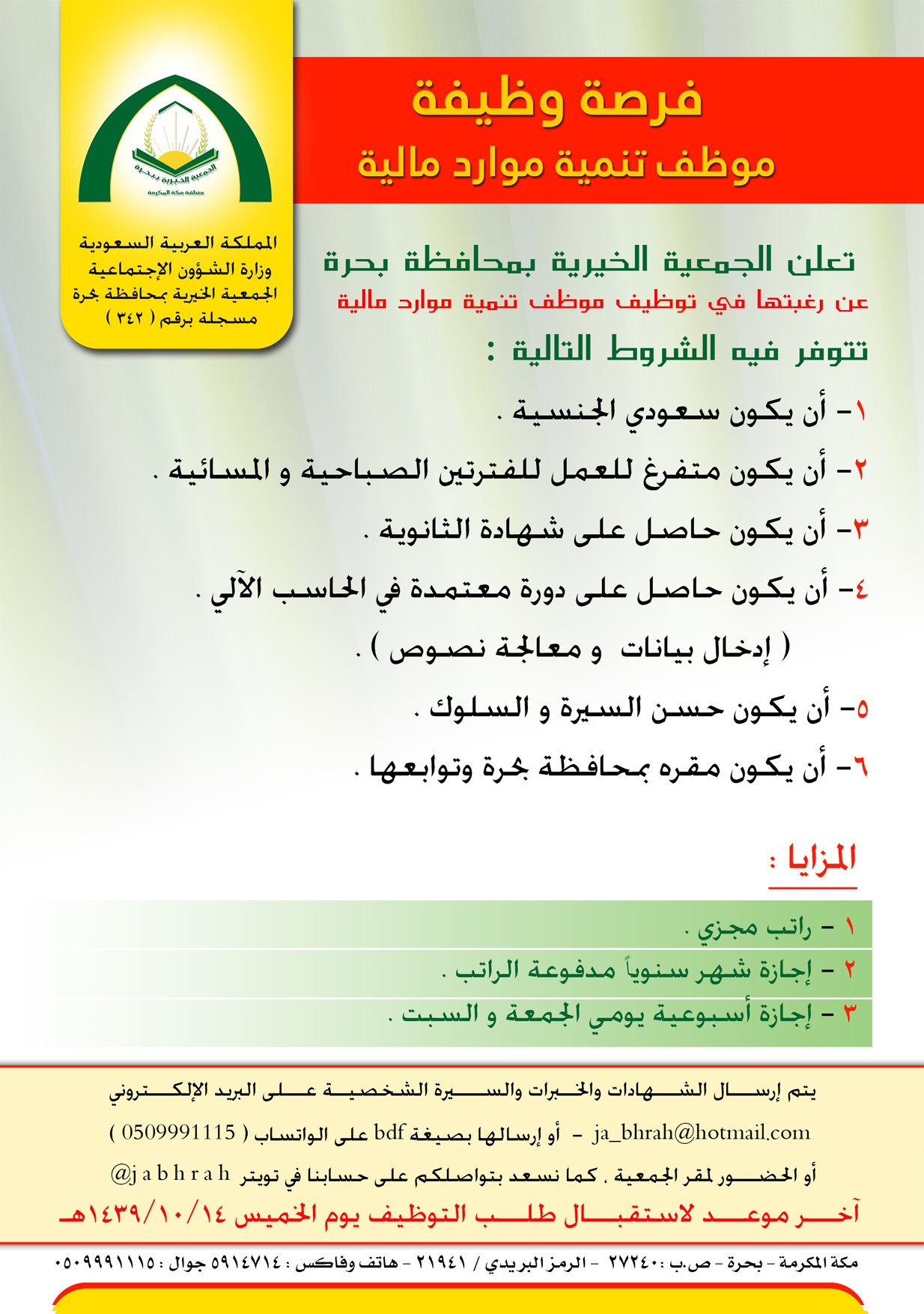 جـ مـ عـ يـ ـة يـ ســ ـر الـ خـ ـيـ ريـ ـة Auf Twitter إعلان وظيفة