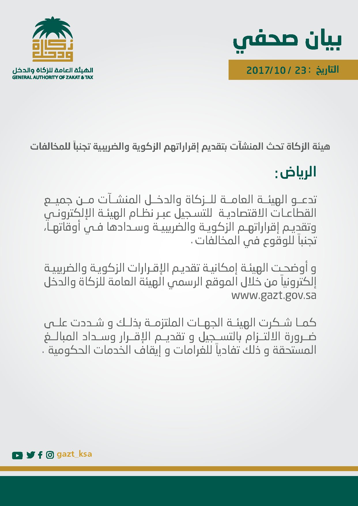 الهيئة العامة للزكاة والدخل On Twitter هيئة الزكاة والدخل تحث المنشآت على تقديم إقراراتهم الزكوية والضريبية تجنبا للمخالفات